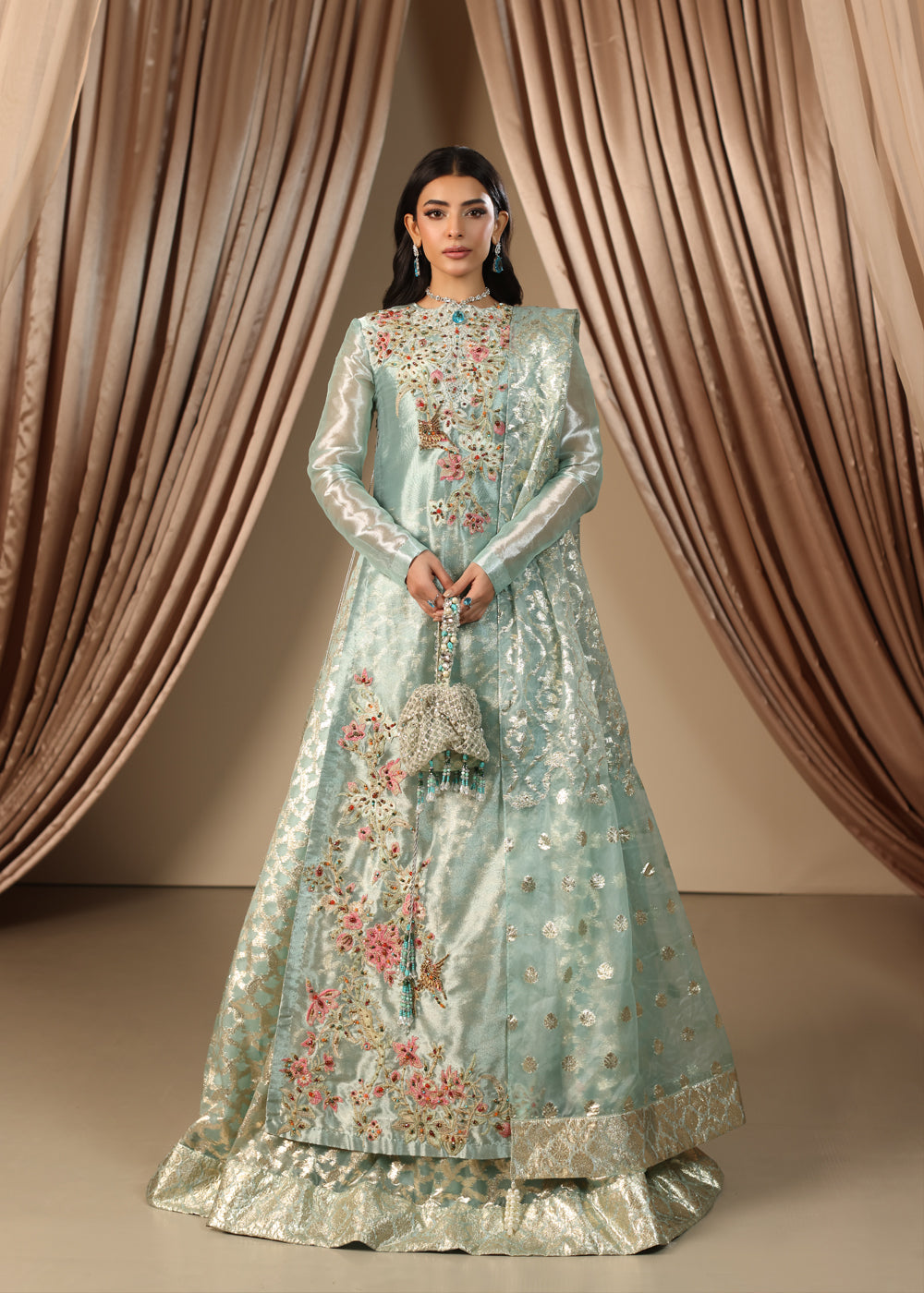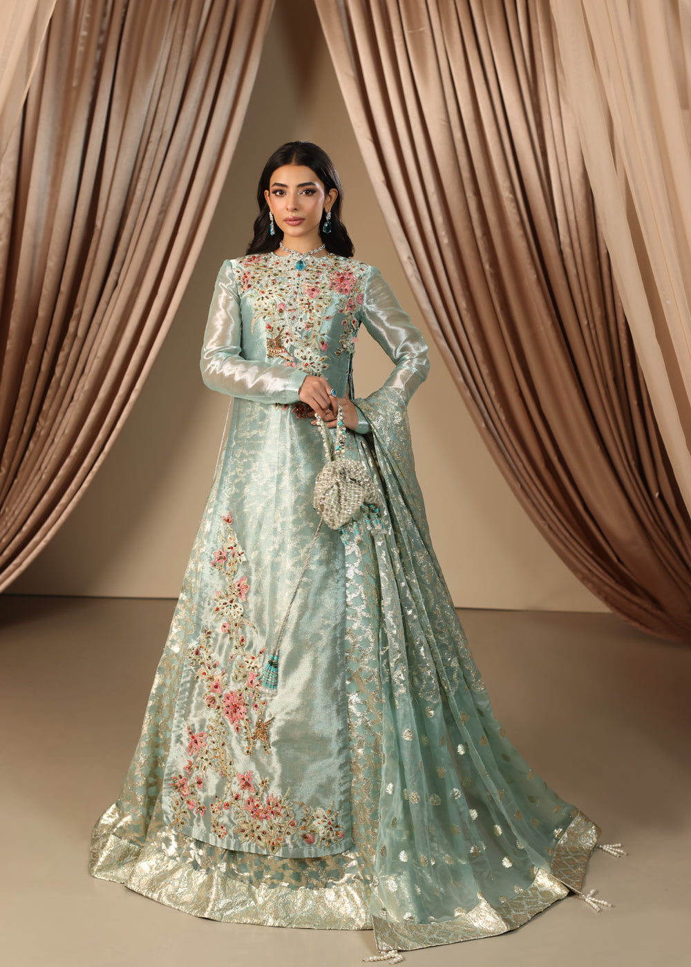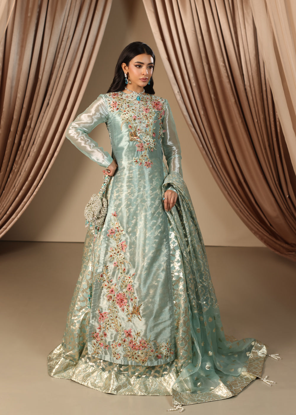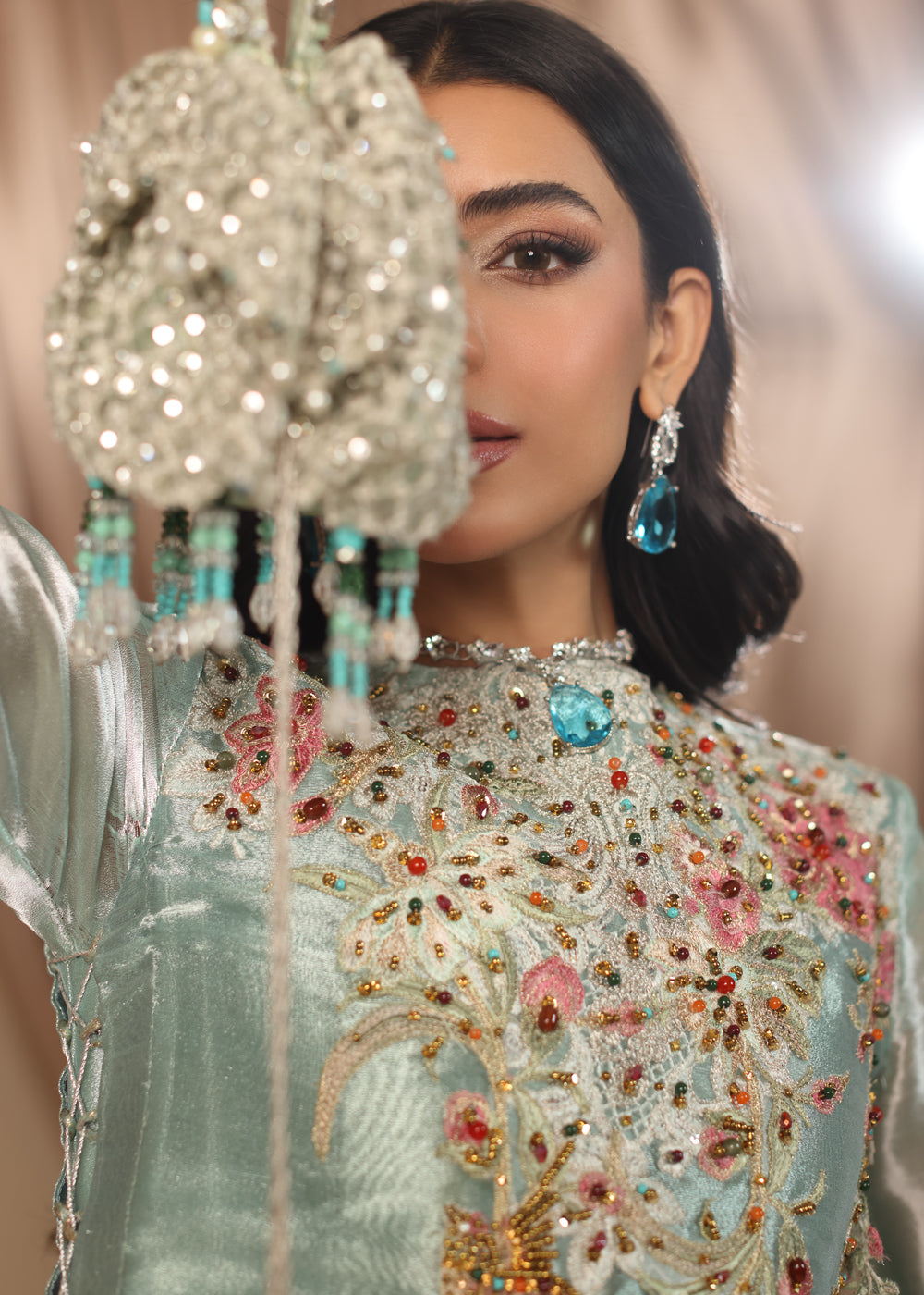 Step into the spotlight with AQUA Princess, a dreamy ensemble drenched in captivating hues of aqua. Gleaming with intricate embellishments, sparkling crystals, and delicate sequins, this enchanting piece boasts a graceful fusion of architectural motifs intertwined beautifully with subtle floral vines. Luxuriously hand-embellished with shimmering Swarovski elements, silver jewels, glistening beads, and exquisite couture piping techniques, AQUA Princess embodies the playful spirit of effortless glamour—ideal for moments when you want to shine bright like royalty.